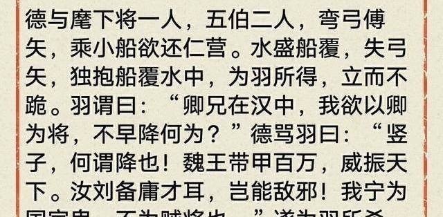 关羽水淹七军,也确实擒住了庞德,庞德坚执不降,被关羽下令斩首。