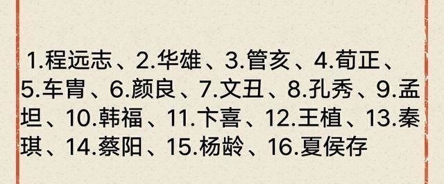 在《三国演义》第27回中,关羽过五关斩六将,以上这六位就都是他的斩获。