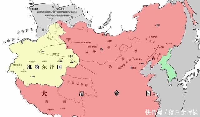 乾隆皇帝时期,准噶尔汗国走向了衰落,其俄罗斯正准确灭准噶尔。可是乾隆皇帝抢先一步,在1755年,消灭了准噶尔汗国,占据了西域地区。这是唐朝以后,中国中央王朝首次占据此地。之后,乾隆又平定了阿睦尔撒纳、大小和卓的叛乱,并将西域改名"新疆",并且设置伊犁将军在此进行管辖,从此清朝的面积达到了1300万平方公里,这个数据一直维持到了1858年,大约100年,这是中国历史上首次出现的现象。