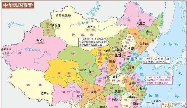 1911年,辛亥革命爆发,孙中山提出"驱除鞑虏,恢复中华",日本企图让东北独立、英国企图让西藏独立、俄罗斯企图让蒙古独立。此后,孙中山和袁世凯进行了"南北议和",针对帝国主义的企图,于是达成了"五族共和"的共同意见。1912年,中华民国宣布成立,孙中山宣布"五族共和",1912年2月,袁世凯逼迫清帝退位,清朝颁布《清帝退位书》,宣布"仍合满、汉、蒙、回、藏五族完全领土为一大中华民国",这也就标志着清朝晚期1100多万平方公里的领土主权全部转让给了中华民国。