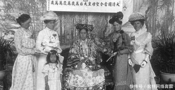 图:慈禧太后与各国公使夫人等眷属合影,可以看到慈禧太后的气场完全不输洋人。