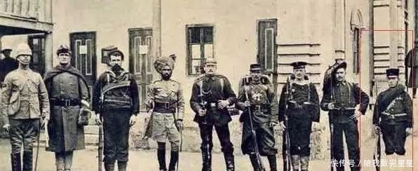 八国联军侵华时候各国各派出一个军人代表合影,按照大小个排队,最右的日本军人····