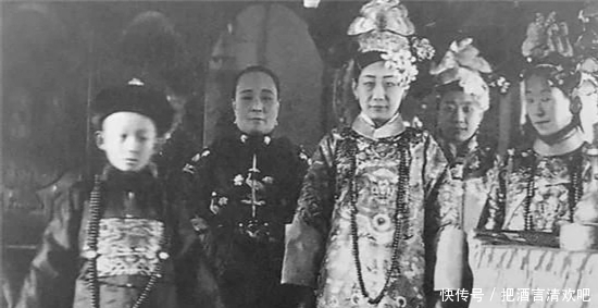 盛装出席婚礼大典的婉容继母爱新觉罗·恒馨,还有婉容的弟弟郭布罗·润麒。