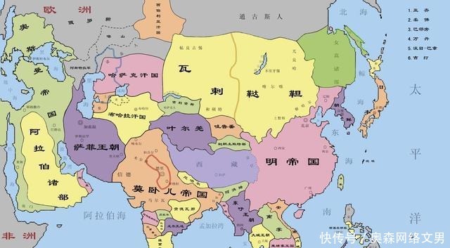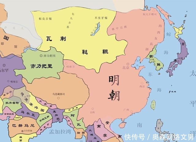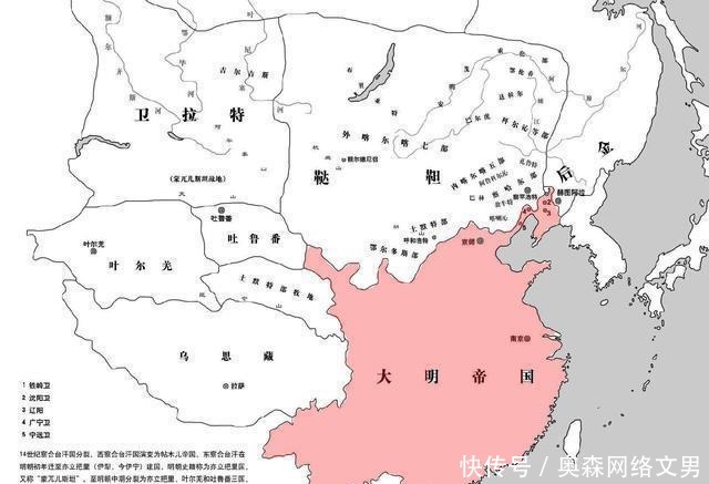 而明朝的局势就有些尴尬了。首先,明朝并未真正消灭元朝,只是把蒙古的势力从中原汉地赶出了,也就是过去蒙元统治的汉地地区独立了。人们将退回大漠的蒙古称为"北元",也就是和明朝并立存在的政权。虽然蒙古在明朝已经分裂了漠南、喀尔喀、漠西三部分,但是蒙古的势力一直很强盛,甚至控制的地区还超过了明朝。蒙古不仅控制着蒙古高原,还控制着西域,后期还在青藏高原建立了和硕特汗国。